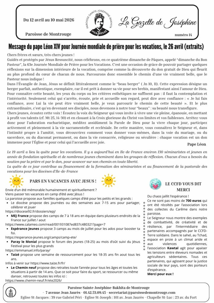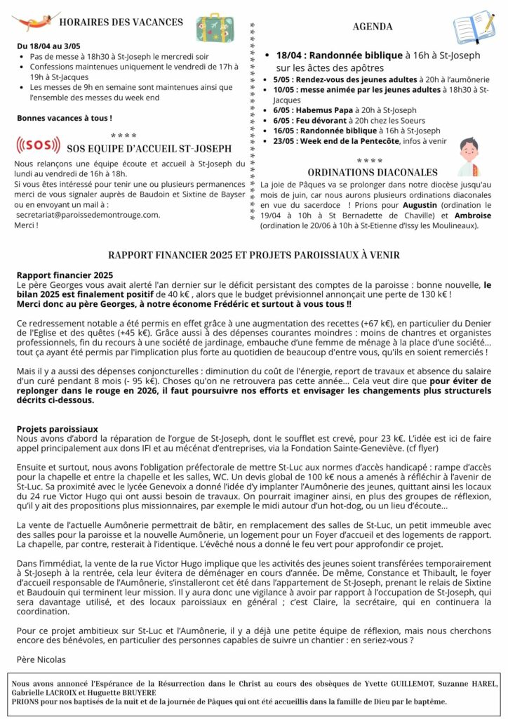 Le bulletin paroissial de la semaine :