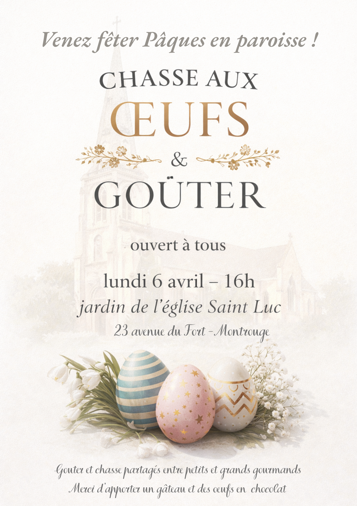 Le dimanche 16 avril à 12h30, vous êtes invités à partager un déjeuner mis en commun.